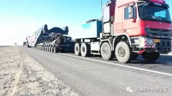 近日,特變電工股份有限公司新疆變壓器廠生產(chǎn)的目前最大、最重的變壓器由大件汽車運輸有限責任公司裝車啟運。該大件運輸車輛總長115米,寬4.9米,高4.98米,車貨總重量達610噸,共28軸,采用2臺奔馳8x8、2臺3縱列12軸線的液壓平板車、1臺鉗夾式大型框架組成。面對如此艱巨的護送任務(wù),自治區(qū)路政管理局結(jié)合“不忘初心、牢記使命”主題教育,主動靠前,多措并舉全力保障超大型變壓器安全運輸。