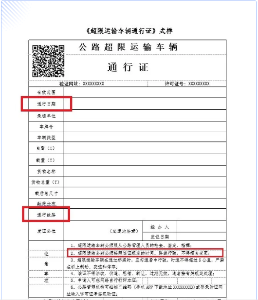 《超限運(yùn)輸車輛通行證》式樣