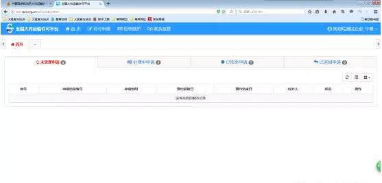 1)、企業(yè)用戶登錄首頁面,可查看處于不同狀態(tài)的申請;