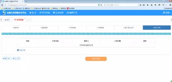 2)、許可申請,點擊頁眉處【許可申請】按鈕,彈出頁面,即可開始填寫申請信息。