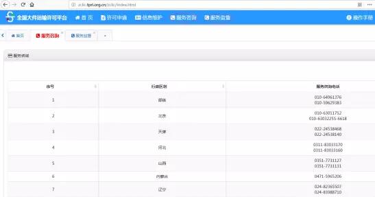 1)企業(yè)用戶成功注冊后,登錄網(wǎng)站,此時用戶尚不能進行業(yè)務申請。應電話聯(lián)系企業(yè)注冊省的協(xié)調人員申請核查企業(yè)資質,點擊頁眉處的【服務咨詢】,查詢本省協(xié)調員電話聯(lián)系。