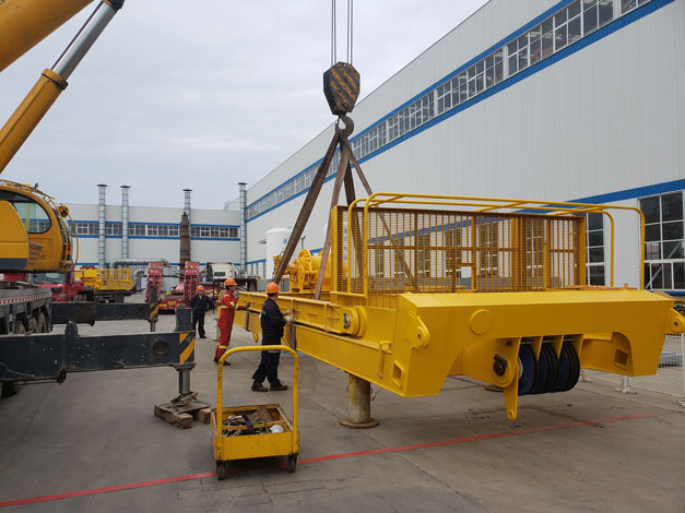 2018年5月21日凌晨5:30分左右,9輛貨車從青島市黃島區(qū)途經(jīng)青蘭高速發(fā)往青島城陽區(qū)天時海洋石油裝備有限公司,此次淳遠(yuǎn)服務(wù)的項(xiàng)目是“保稅物流一日游”業(yè)務(wù)。大約7點(diǎn)30分,貨車依次駛?cè)胩鞎r海洋廠區(qū)內(nèi),此次運(yùn)輸?shù)呢浳锟傊貫?69噸的設(shè)備機(jī)組,上午8時許,操作正式開始。